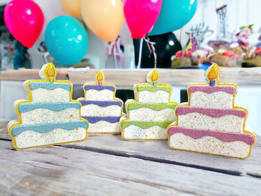 Birthday Cake Bath Bomb with Rainbow Colors Inside