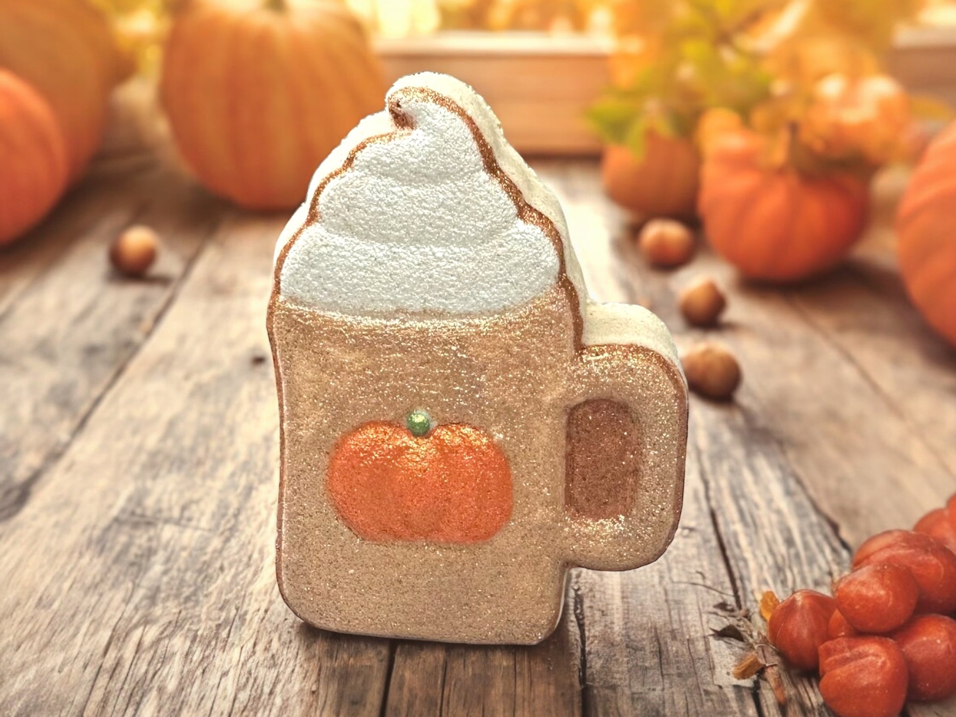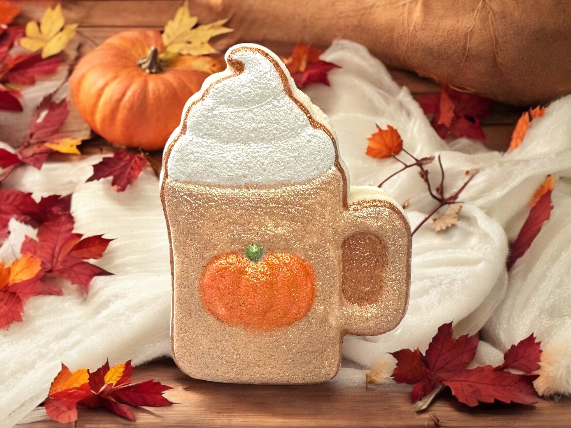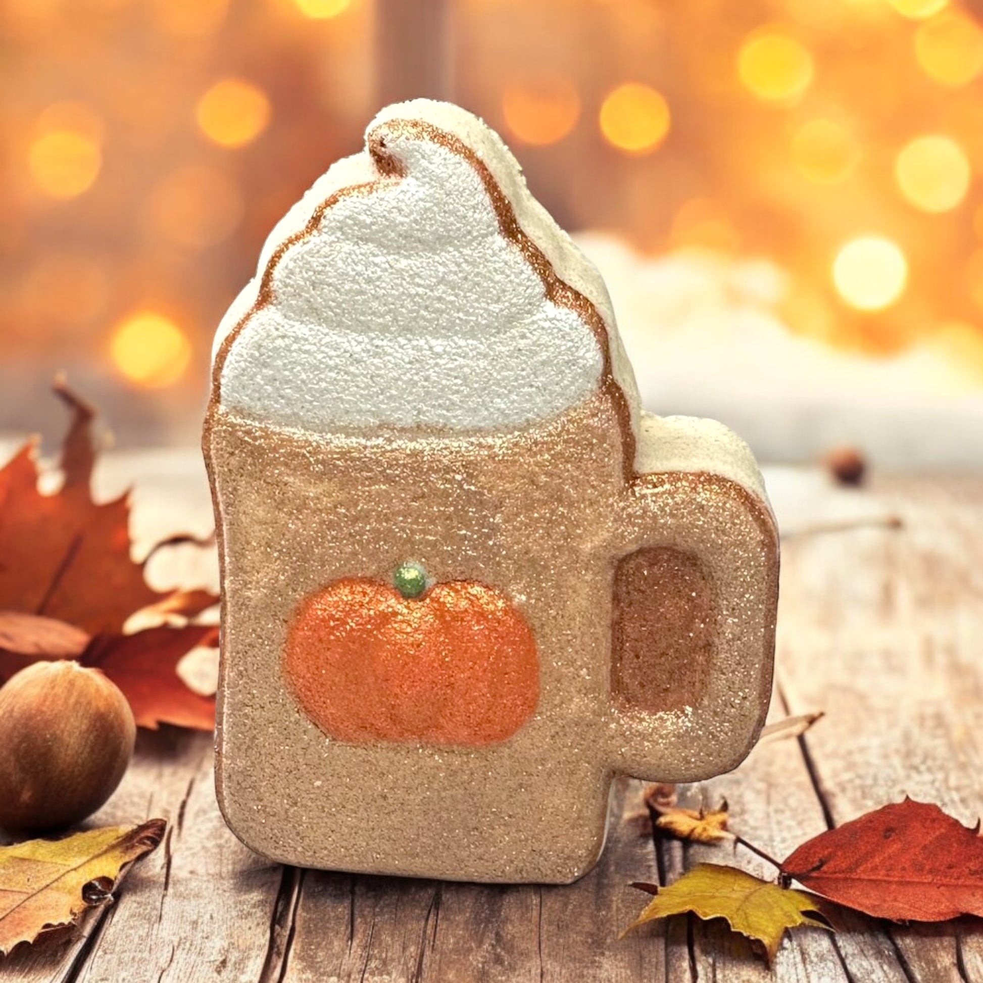 Marshmallow Pumpkin Latte Bath Bomb, Hand Painted